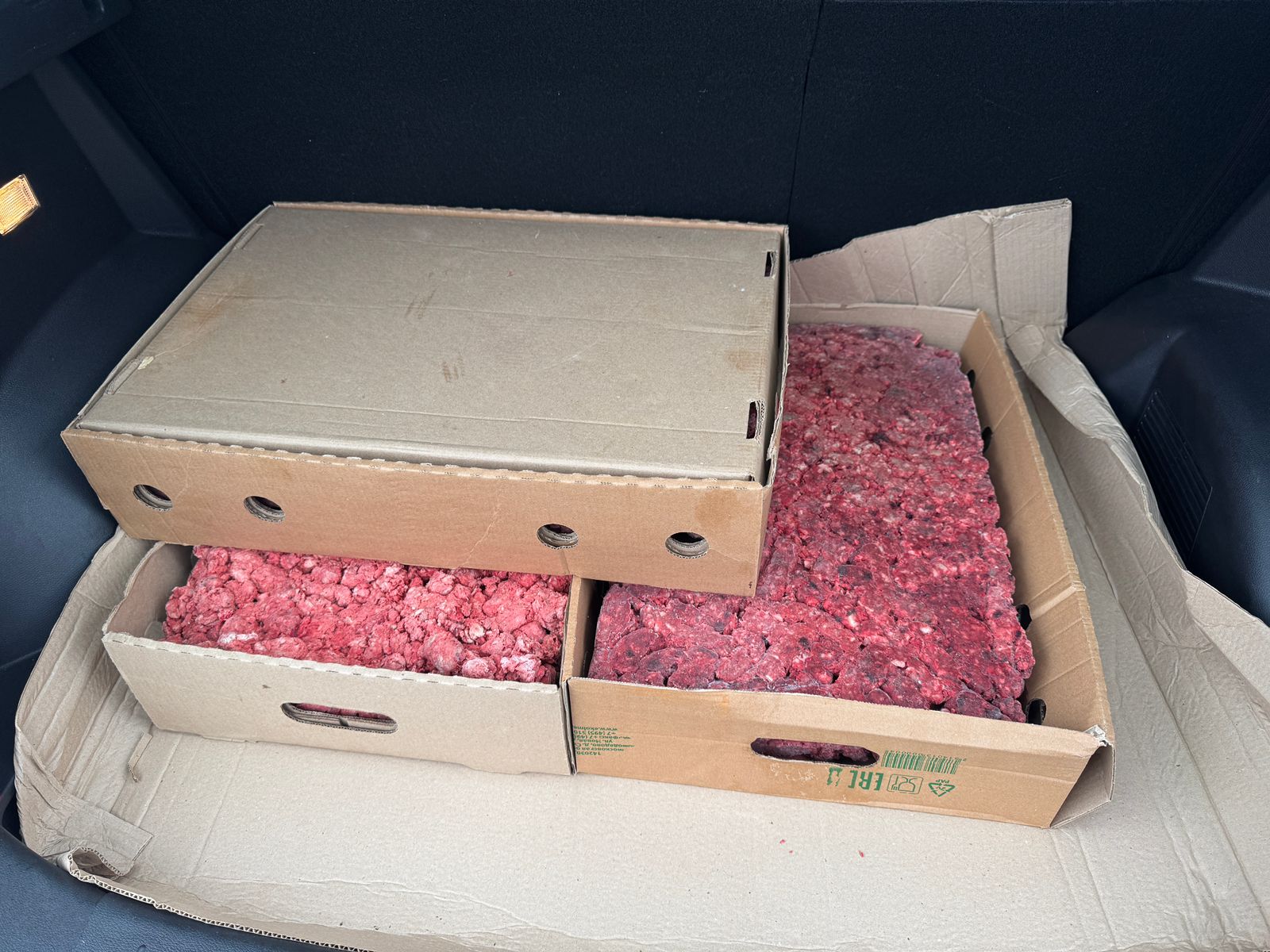 Сотрудничая с мясным производством приют они привезли 200 кг бескостного говяжьего фарша.